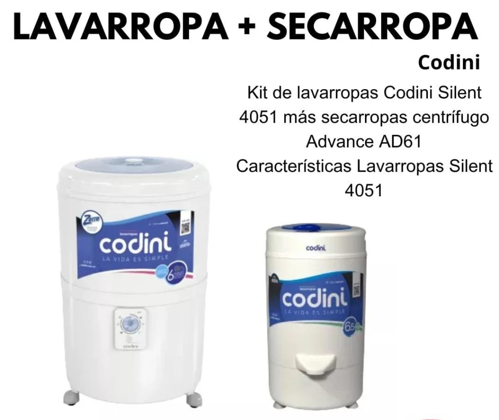 COMBO LAVARROPAS CODINI 10KG + SECARROPAS CODINI